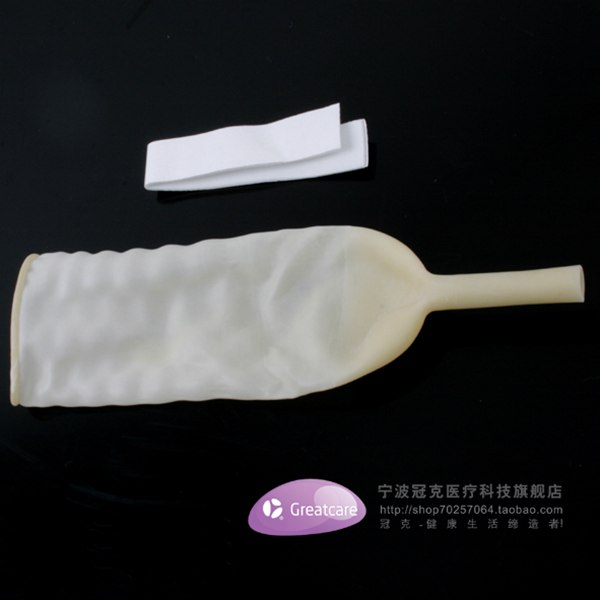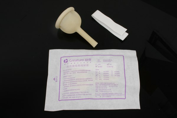 男用尿套用于与集尿袋或引流袋连接,供男性尿失禁患者、昏迷病人或行动不便者,套在其生殖器上收集尿液用。由于它成本低,也方便进行一次性使用,避免造成医源性交叉感染。男性尿套解决很多患者诸多生活不便,提高他们的生活质量,也大大减轻了护理工作人员的工作量。